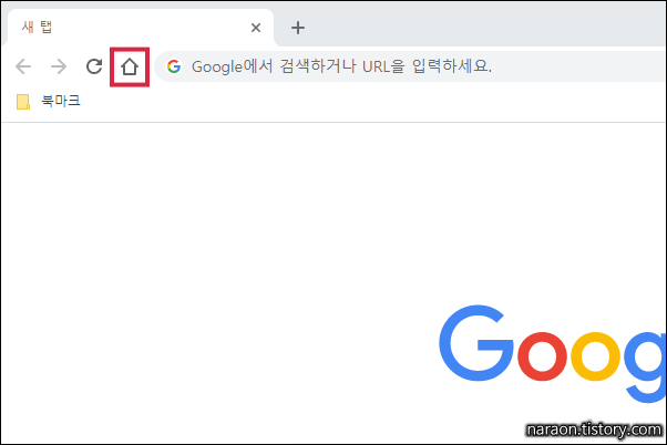 ▲ 설정 후 크롬 상단 주소표시줄 옆에 홈 버튼이 활성화되었습니다. 해당 버튼을 누르면 새 탭 페이지 또는 지정된 사이트로 이동합니다.
