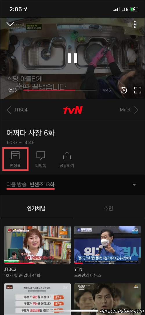 모바일에서 편성표, 예약알림 확인하기