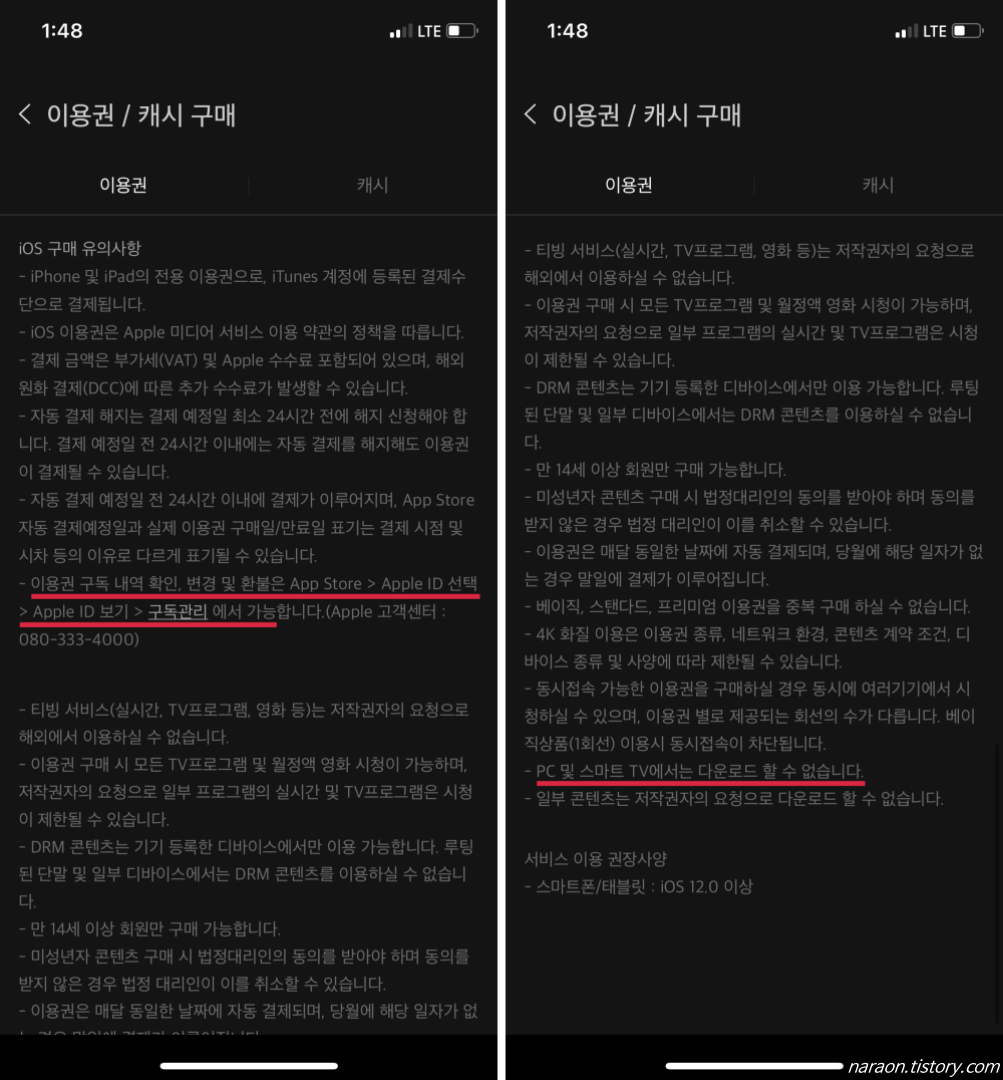 - 이용권 구독내역 확인, 변경, 환불은 앱스토어의 구독관리 메뉴에서 가능합니다.